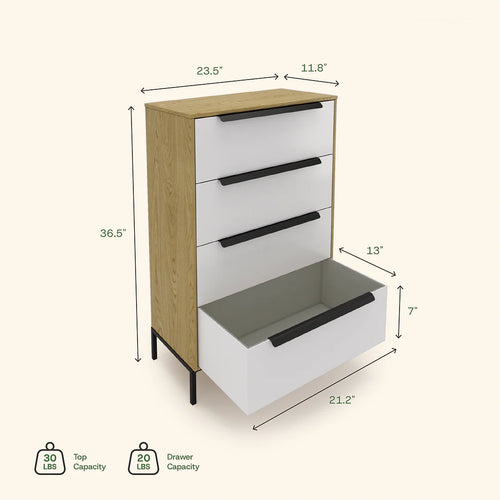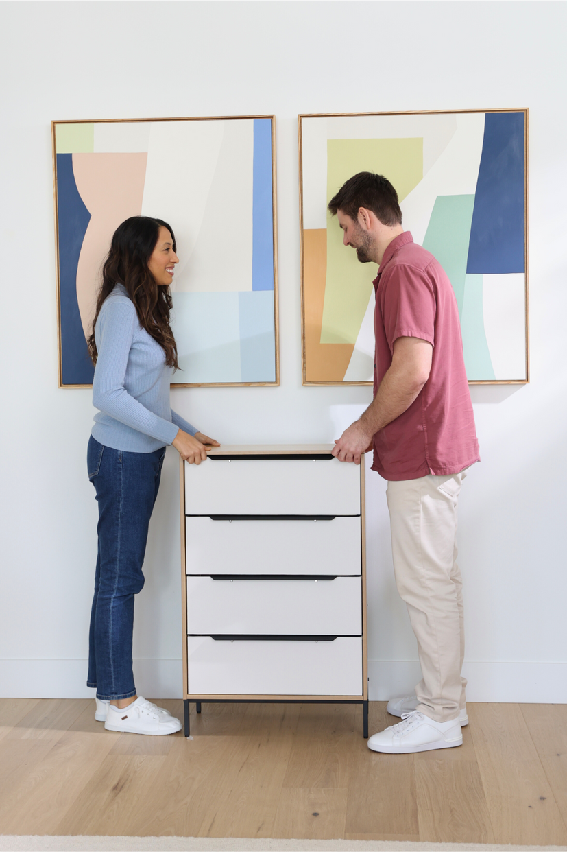 This is what happens when wood and fabric furniture figure out small-space living. Four roomy drawers in a wood-framed design that’s surprisingly light, seriously sturdy, and thoughtfully built to maximize every inch. Premium materials and clean lines make this the storage upgrade your space has been waiting for. Choose from three wood hues to make it yours.