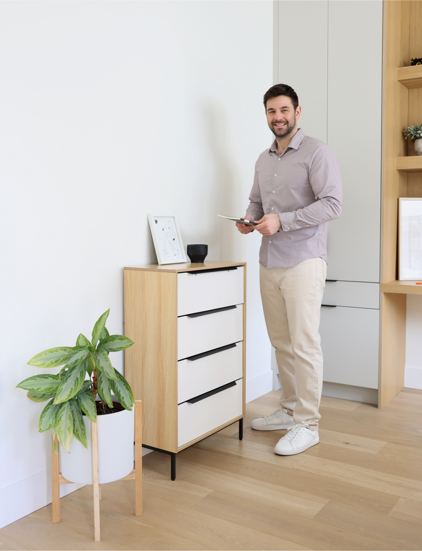 • Lira is built to feel permanent, with a clean-lined design that fits seamlessly into bedrooms, living rooms, or even entryways.