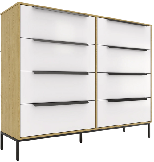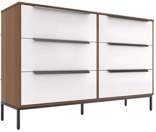 • The drawers are structured fabric, finished with wood-look fronts. You get the visual elegance of wood with the lighter, flexible benefits of fabric.